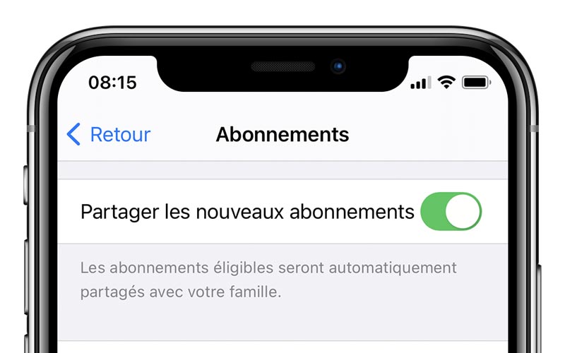 Comment activer le partage des abonnements sur iOS 14.2 ?