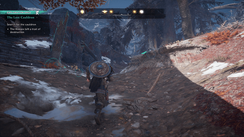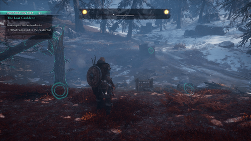 Où trouver le chaudron ? Lorsque vous arrivez, vous trouverez ce qui ressemble au site d’une embuscade et le chaudron dont vous avez besoin ne sera nulle part en vue. Utilisez votre vision Odin pour enquêter : Qu’est devenu le chaudron ?