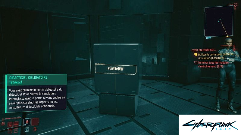 Au début de la mission « Le sauvetage », Jackie vous remettra un éclat qui vous permettra d’accéder à une simulation d’entrainement VR, un tutoriel pour les mécaniques de base du jeu :