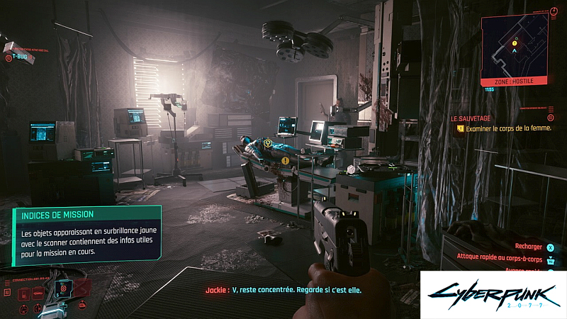 Pirater la porte → Suivre Jackie → Examiner le corps de la femme