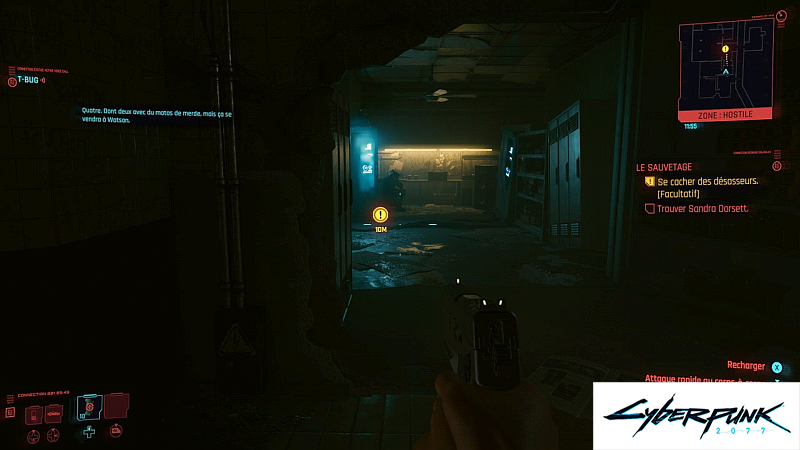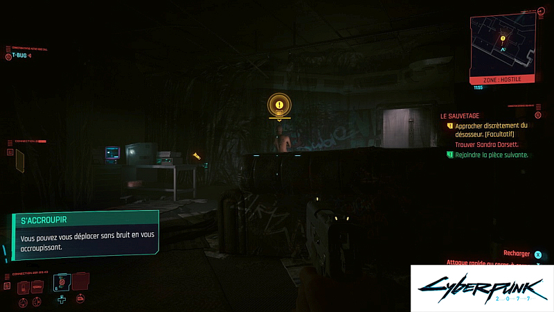 Se cacher des désosseurs (facultatif) → Attendre sans se faire remarquer (facultatif) → Neutraliser le désosseur (facultatif) → Emprunter le chemin marqué par T-Bug (facultatif)