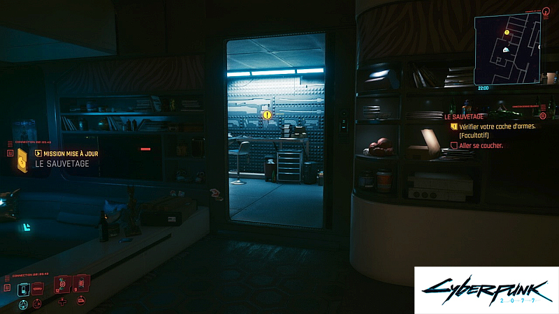 Après avoir vaincu les désosseurs, continuez le trajet et vous arriverez finalement à votre appartement. Montez dans l’ascenseur et vous pouvez choisir de vérifier votre réserve d’armes, mais finalement, allez au lit pour terminer la quête.