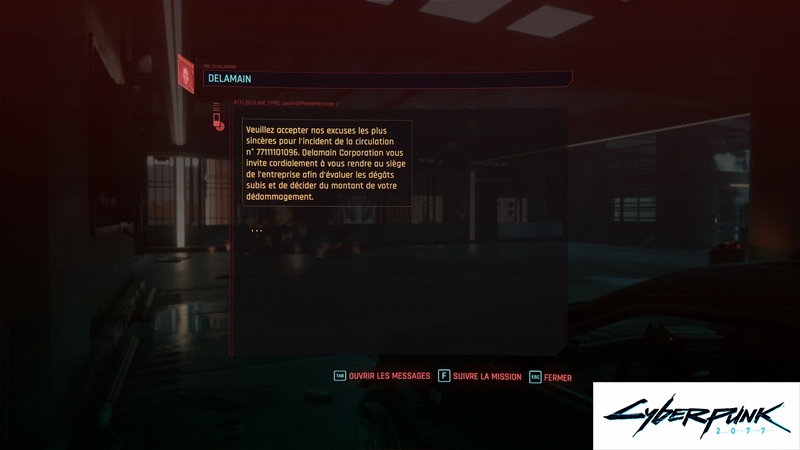 Vous devez attendre la réparation de votre voiture. Promenez-vous dans Night City et faites d’autres missions. Après un certain temps, votre HELLA EC-D 1360 sera réparé et vous recevrez un nouveau message de Delamain vous informant que votre voiture est de nouveau disponible.