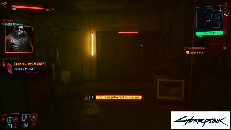 Cependant, au cours de la mission, vous parlez à une cliente qui a des informations sur l’emplacement de la biopuce. Cette cliente, Evelyn Parker, vous montre vos deux premières Danse Sensorielle d’elle se rendant au penthouse de Yorinobu Arasaka. En tant que deuxième fils de la famille Arasaka, il tient cette biopuce en vente à un bienfaiteur aléatoire. C’est là que vous entrez en tant que V, et on vous propose une grande somme d’argent pour la prendre.