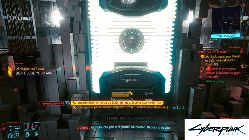 Pour les joueurs qui souhaitent maintenir une bonne relation avec Johnny, il est préférable de choisir de détruire le noyau. Ne dépensez pas vos points d’attribut uniquement pour obtenir les 10 Intelligence nécessaires pour fusionner le noyau.