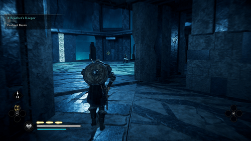 Après cette cinématique, vous serez de retour dans la pièce où vous étiez avant d’entrer dans la vision / simulation de Sigurd. Vous constaterez que Basim a Sigurd par le cou.