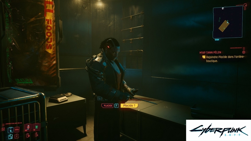 Rejoindre Placide dans l’arrière boutique → Suivre Placide