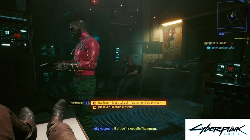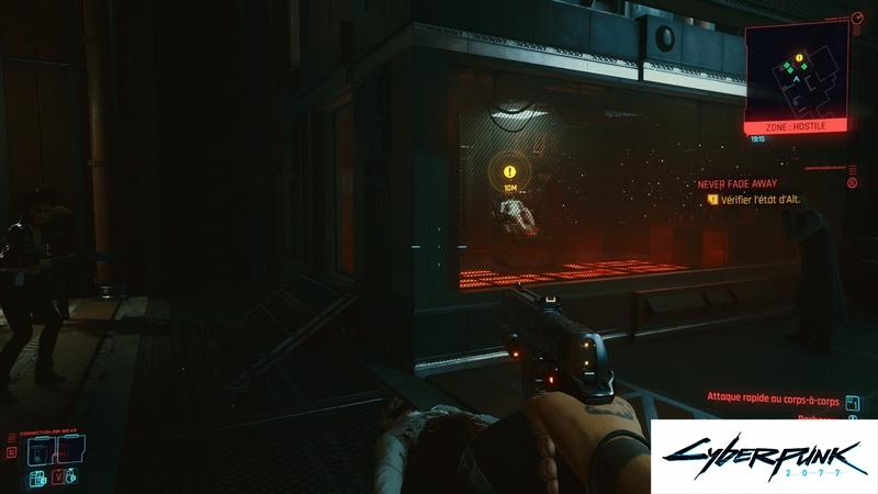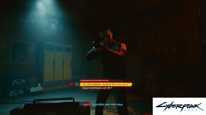 Acceptez l’accord de Santiago et vous serez attaqué par des agents Arasaka. Tirez pour sortir et dirigez-vous vers l’ascenseur du premier étage.