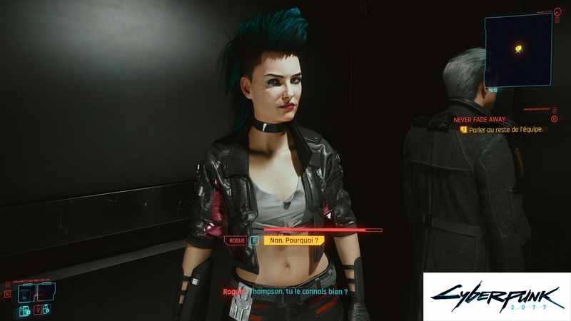 Une fois à l’intérieur de la tour Arasaka, parlez au reste de l’équipe dans l’ascenseur.