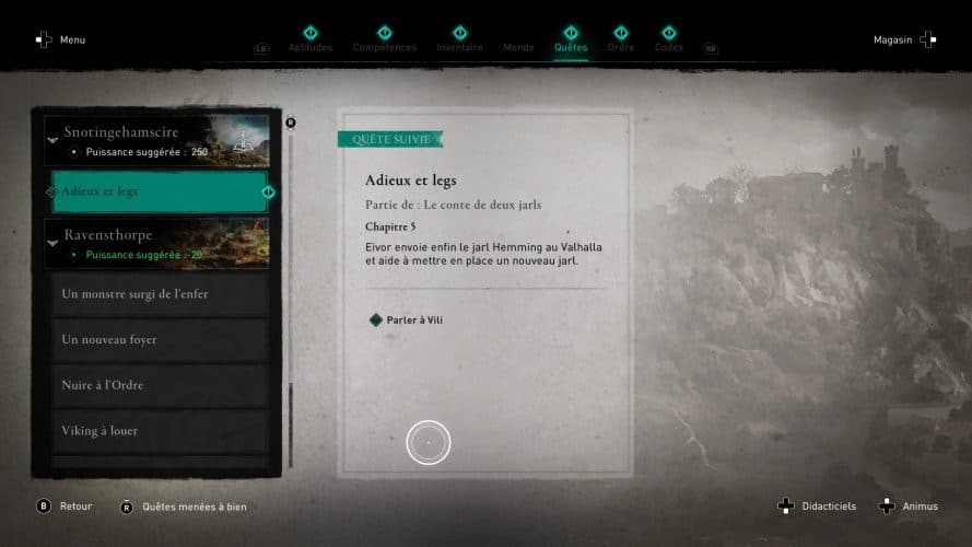 Adieux et legs est la septième quête de la saga Le conte de deux jarls d’Assassin’s Creed Valhalla.