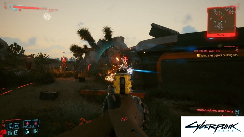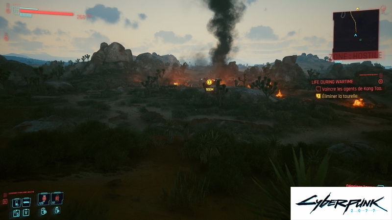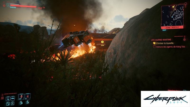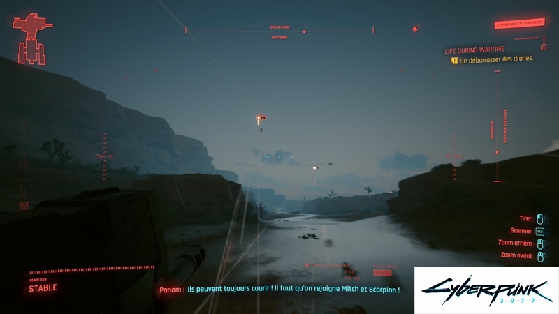 En vous rendant sur le site du crash, vous rencontrerez plusieurs drones qui tentent de vous ralentir. Comme indiqué par Panam, connectez-vous à nouveau à la tourelle et abattez-les. En tirant sur les drones, la tourelle se bloque.