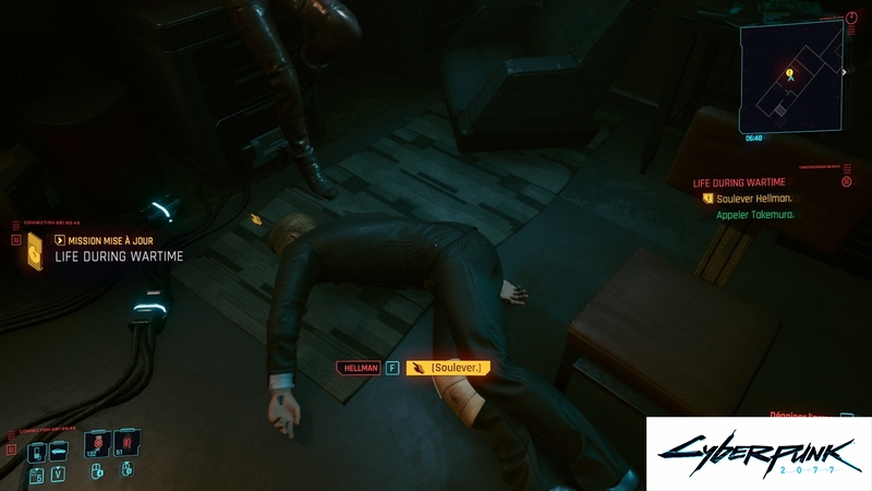 Pendant l’interrogatoire, Johnny Silverhand apparaîtra dans la pièce, regardant la rencontre se dérouler. Après une longue conversation avec Hellman concernant la biopuce et la meilleure façon de procéder pour la retirer, Takemura arrivera enfin et prendra en charge l’interrogatoire.