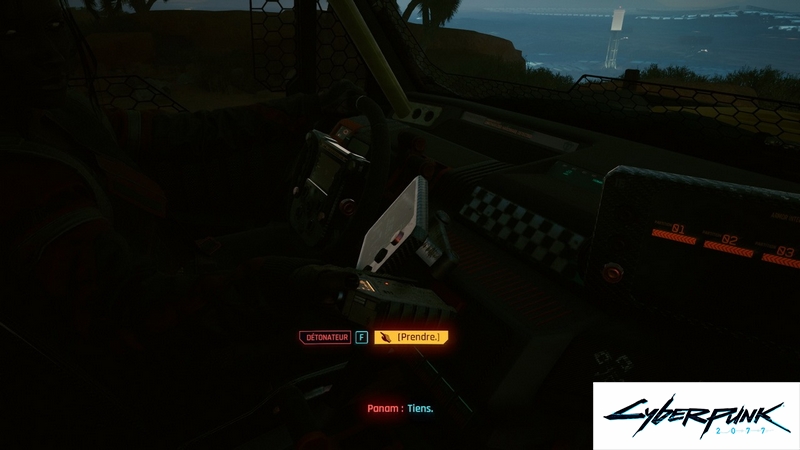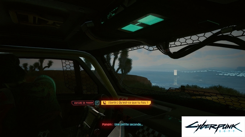 Alors que l’horloge sonnera à minuit, V se lèvera et subira un autre dysfonctionnement de la relic. Une fois le dysfonctionnement passé, parlez à Panam et offrez votre aide pendant qu’elle travaille sur sa voiture.