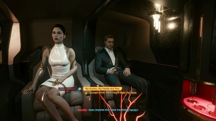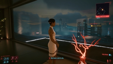 En entrant dans la Navy, une cinématique longue commencera lorsque vous vous dirigerez vers la tour Arasaka. Au cours de cette scène, Hanako et le Dr Hellman commenceront à remettre en question les capacités et le bien-être de V à la suite de l’incident survenu dans la voiture avant d’arriver au domaine.