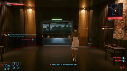 Une fois que la Navy atterrit, suivez Hanako à l’intérieur de la tour Arasaka, où la mission se terminera bientôt – mais pas avant que V ne subisse un autre dysfonctionnement de Relic.