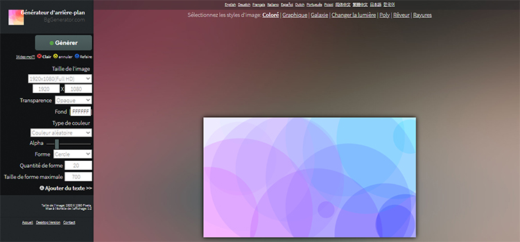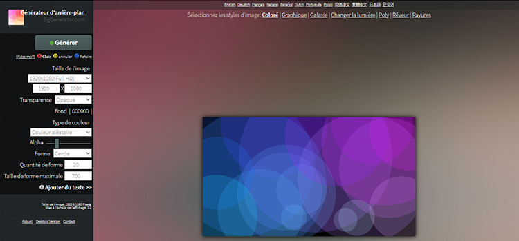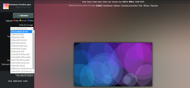 Allez sur www.bggenerator.com dans votre navigateur et vous verrez immédiatement un beau fond d’écran. Avec le bouton «Générer» à gauche, vous en créez un nouveau. Et avec les boutons Enregistrer en bas, vous pouvez enregistrer un fond d’écran réussi.