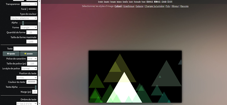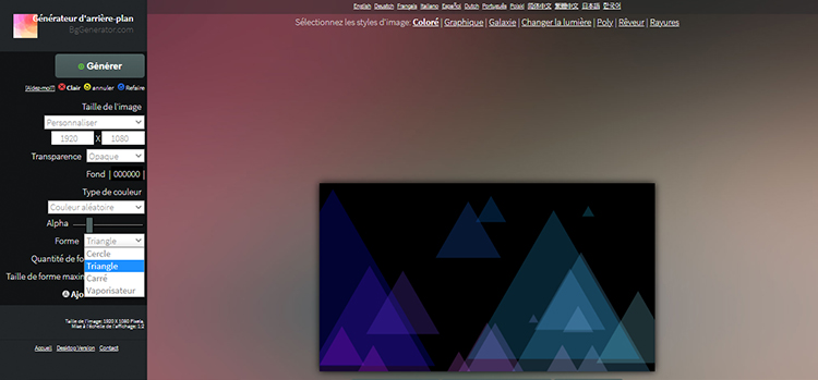 Jouez avec les paramètres à gauche de l’écran pour un nouveau fond d’écran. Par exemple, définissez «Fond» sur noir, pour un fond d’écran en mode sombre. Cliquez sur «Générer» pour voir le résultat.