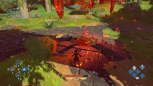 Nous sommes allés d’abord à la crypte sud-est. À l’approche du marqueur d’objectif, vous trouverez la crypte du tartare dans un petit champ gardé par un petit groupe de sangliers. Tuez-les, puis détruisez la statue ici pour trouver un trou dans lequel nous pouvons tomber pour atteindre la crypte.