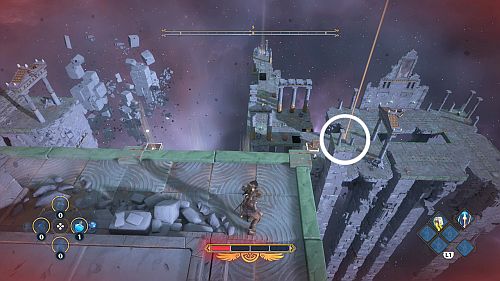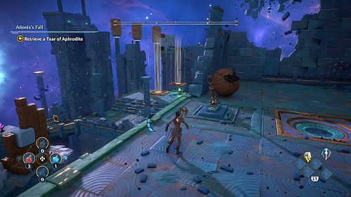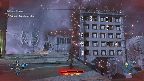 Ce troisième puzzle est comme les deux précédents. Une fois que la balle a trouvé la douille, une autre rafale de vent s’activera au sommet de cette ruine. Utilisez les plates-formes mobiles pour l’atteindre. Continuez à travers la série de rafales de vent pour atteindre une plate-forme avec la larme d’Aphrodite et la Foudre de Zeus. Prenez le premier pour votre objectif et le second pour sortir de la crypte.