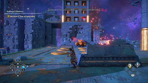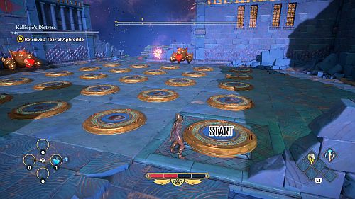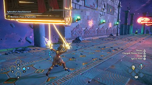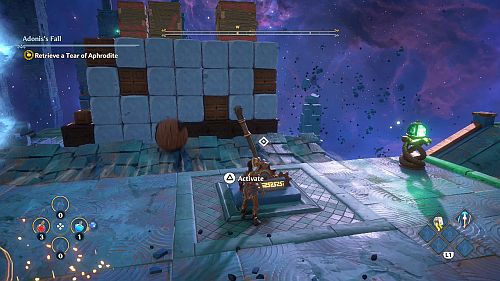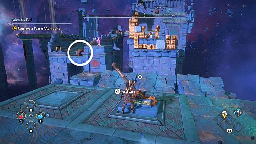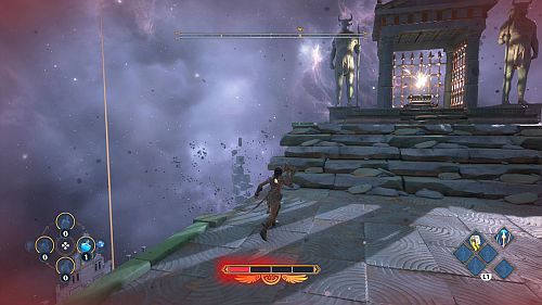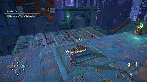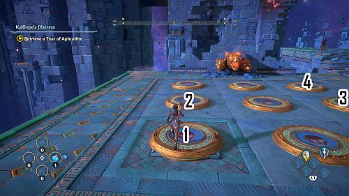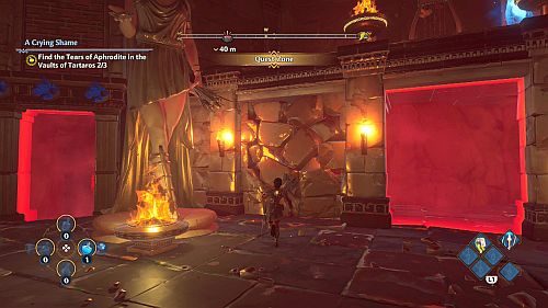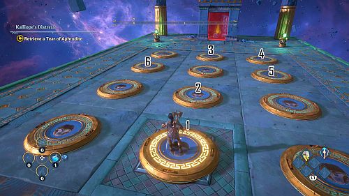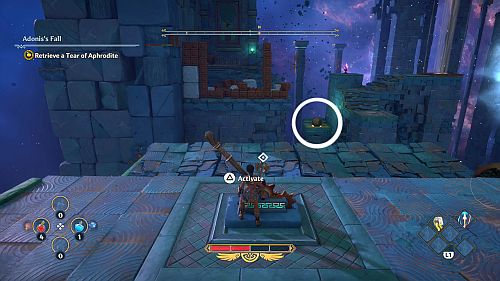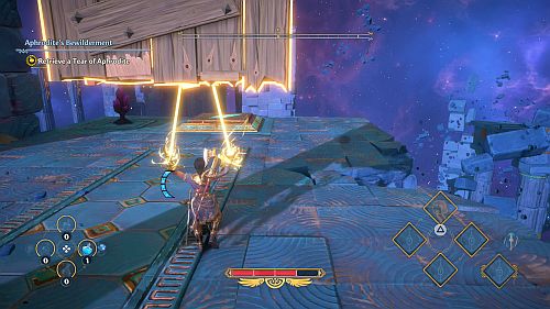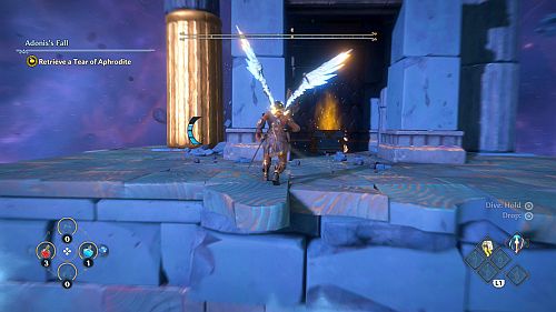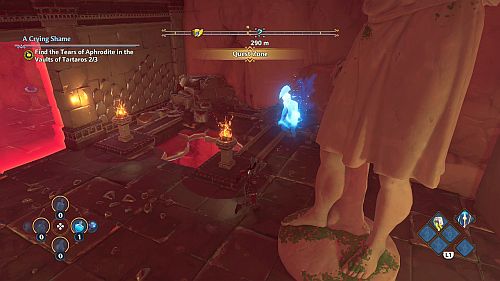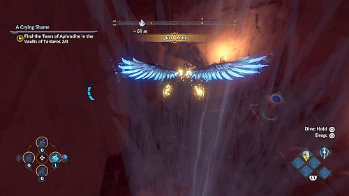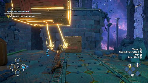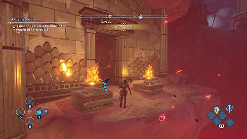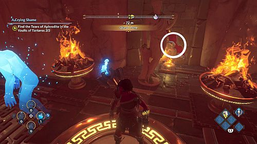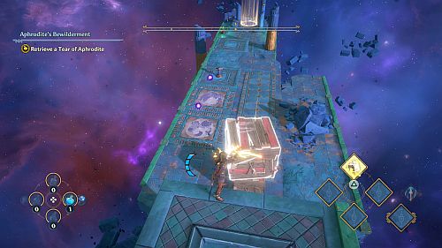 Revenez aux rafales de vent et montez sur les plates-formes au loin. Ici, nous trouverons une larme d’Aphrodite et la Foudre de Zeus. Prenez le premier pour votre objectif et le second pour sortir de la crypte.