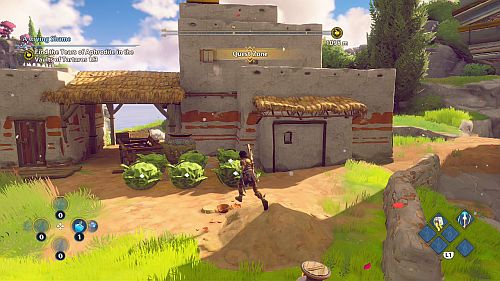 Pour ouvrir la porte, nous devons placer une tête de laitue sur chacun des piédestaux vides. Nous pourrons en trouver tout un tas dans un bâtiment au sommet de la falaise à l’ouest de l’entrée de la cour. Prenez-les et jetez-les dans la cour et remplissez chacun des socles vierges. Cela ouvrira la porte.