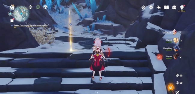 Après avoir déverrouillé l’Arbre permagelé, montez plus loin sur la montagne jusqu’à atteindre une zone avec un fort courant de vent. Faites votre rapport à Iris pour connaître votre prochain objectif. Après avoir fait rapport à Iris, elle vous informe que vous devez dégeler les 2 autres fragments situés à la Périphérie de la Cité enfouie et Grotte Luminétoile.