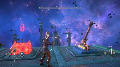 Derrière la Foudre de Zeus, vous devez actionne le levier et tirez sur les 10 cibles qui apparaîtront à proximité avec votre arc. Après, ouvrez le coffre pour récupérer le Casque Perçante sagesse. Revenez récupérer la Foudre de Zeus pour quitter cette crypte.