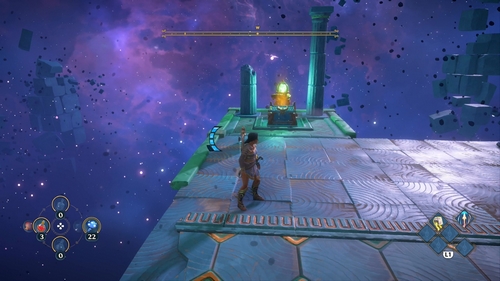 Une fois à l’intérieur du coffre-fort, sautez à travers les plates-formes jusqu’à ce que vous atteigniez une tuile point de contrôle et un levier. Prenez la potion de guérison du rebord vers la droite (si nécessaire), puis tirez le levier pour ouvrir la grande porte inquiétante devant vous.