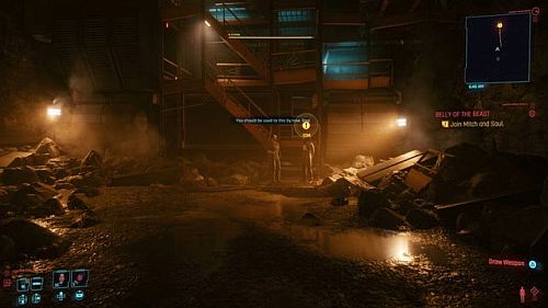 Juste après la bataille sur le chantier, vous passerez automatiquement à ce travail juste après être entré dans le tunnel du site. Parler à Panam pendant que vous êtes dans le panzer pour commencer. Ensuite, quittez le Basilisk et rejoignez Mitch et Saul. Approchez-vous de l’objectif marqué pour les trouver tous les deux vous attendant avec Panam par les escaliers.