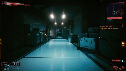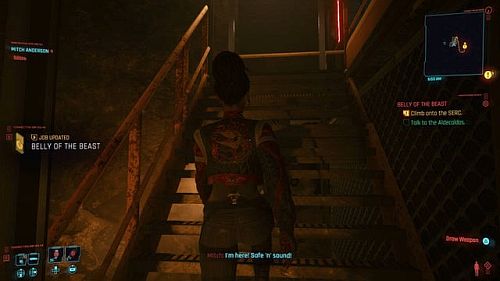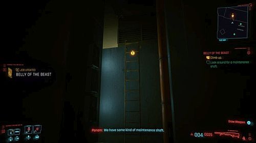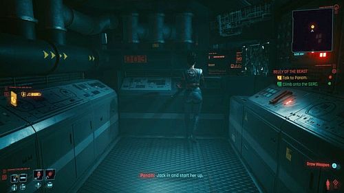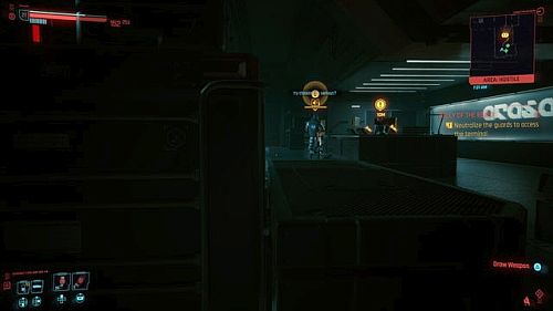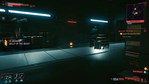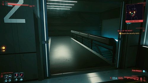Votre prochain objectif est de vous diriger vers la salle de contrôle avec Panam pour commencer à percer dans le bâtiment Arasaka. Peu de temps après, sortez et parlez à nouveau à Saul. Après la conversation, vous allez maintenant commencer à infiltrer le bâtiment Arasaka.