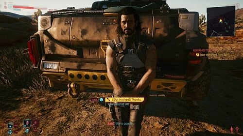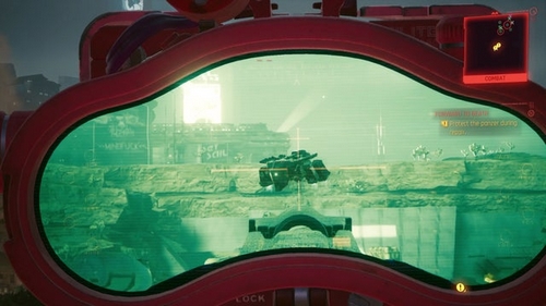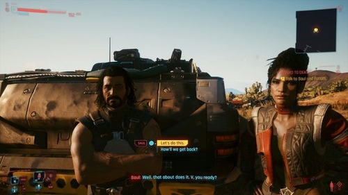 Avec les moteurs qui rugissent, il est enfin temps de mettre le gaz et de suivre Saul à travers les Badlands alors que vous vous dirigez vers le chantier de construction de Militech. Lorsque vous atteignez l’entrée du site, le Panzer fonctionnera mal et s’arrêtera complètement.