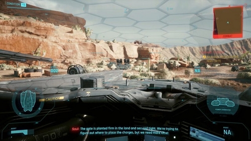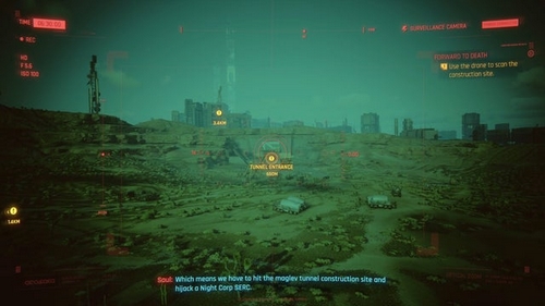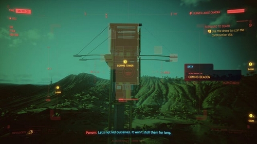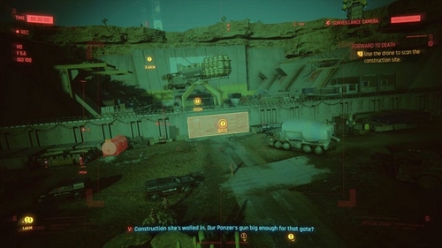 Au fur et à mesure que le drone se déplace sur le chantier de construction, vous aurez la possibilité de scanner certains aspects du site, tels que leur tour de communication et leur porte principale, car cela vous permettra de collecter encore plus d’informations pour ne pas vous lancer complètement aveugle dans la bataille. Cette partie particulière de la mission est assez simple, et vous serez invité avec un marqueur pour chaque zone que vous devez scanner.