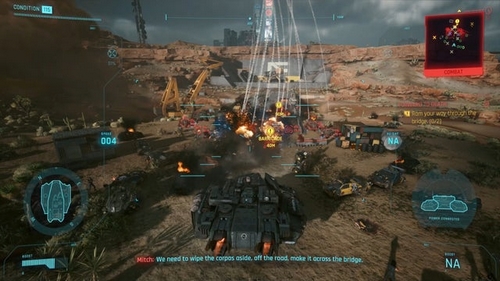 Après avoir fait face à la vague de drones, Panam sera finalement en mesure de remettre le Panzer en marche. En remontant à l’intérieur, continuez en avant en suivant Saul.