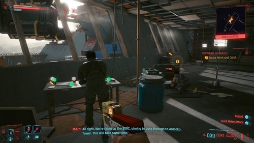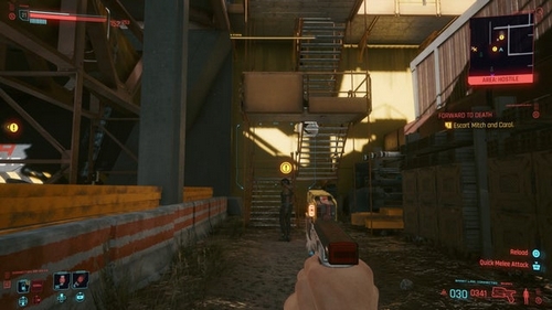 En escortant Mitch et Carol, vous verrez 20 soldats des forces de Militech descendre dans la région.