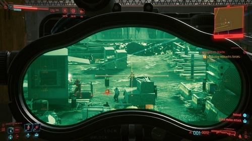 Avec les voitures et les matériaux du chantier comme couverture, utilisez le fusil de sniper de Panam – cela vous aidera à prendre peu ou pas de dégâts pour neutraliser les huit ennemis qui se trouvent vers la fin de la zone, en combattant le reste du clan.