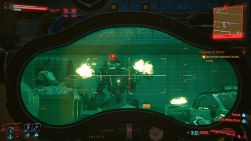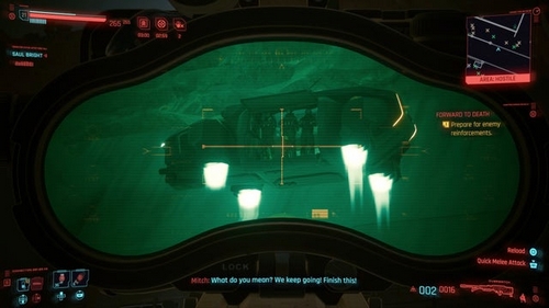 En suivant le marqueur de la mission à l’extérieur du chantier de construction, vous apercevrez bientôt les forces Militech entrantes.