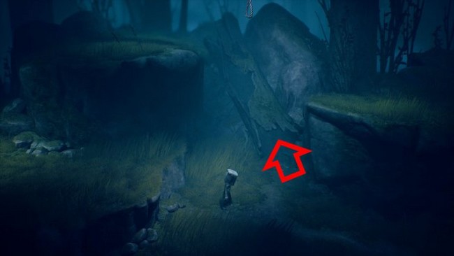 Continuez à droite jusqu’à ce que vous tombiez dans une zone avec un certain nombre de chaussures au sol. Prenez une chaussure et jetez-la sur le rebord de droite. Grimpez sur le rebord puis prenez la chaussure. Jetez-le sur la pile de feuilles à votre droite pour déclencher un piège. Allez à droite et utilisez la bûche abaissée pour atteindre le rebord supérieur. Continuez vers la droite jusqu’à ce que vous atteigniez une zone avec des pièges à ours. Ne marchez pas sur les pièges. Grimpez sur les bûches tombées puis sortez le bâton du piège. Marchez vers la droite avec le bâton en main et utilisez-le pour déclencher le piège à ours à côté du tunnel à bûches. Traversez le tunnel.