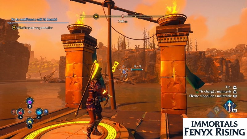 Une fois que vous êtes arrivé sur cette petite île, dirigez-vous vers le nord de l’île principale pour repérer votre première cible: un anneau au bout d’un objet en forme de hache. Le but est d’utiliser la capacité de votre flèche d’Apollon pour guider votre flèche à travers tous les anneaux, puis frapper une torche à la fin.