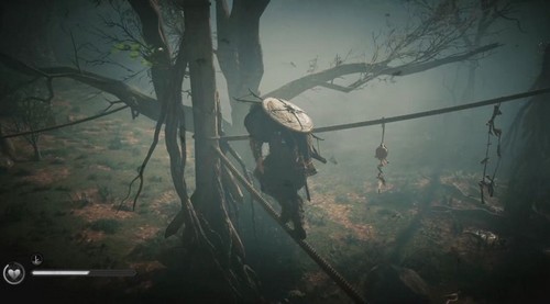 Traversez les branches des arbres sur une autre corde, puis continuez sur une autre branche jusqu’à ce que vous atteigniez un grand arbre que vous devez traverser. Allez tout droit sur une autre branche jusqu’à ce que vous puissiez sauter au sommet d’un autre poteau.