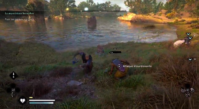 Après avoir nourri Njal, un groupe de soldats apparaîtra le long des rives du lac. Sortez ces quatre soldats avec Njal. Une fois que les soldats sont vaincus, retournez à Bjorn dans la grotte. Avant de pouvoir lui parler, vous devrez éliminer un autre groupe d’ennemis juste à l’extérieur de la grotte. Une fois que ces soldats sont vaincus, parlez à Bjorn pour déclencher une cinématique.