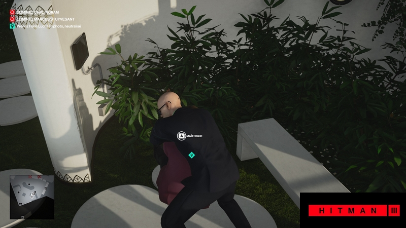 L’homme qui nous intéresse erre dans la zone du jardin au niveau 01. Distrayez-le en allumant le système de sonorisation dans le jardin ou en lançant quelque chose dans un coin qui ne peut être vu par les autres. Assommez-le et prenez ses vêtements.