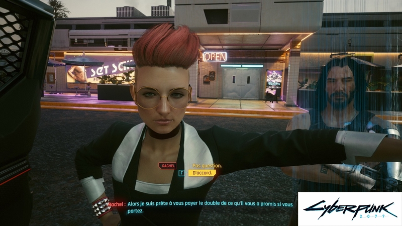 Si vous répondez «Non» et rejetez l’offre de Rachel, vous recevrez votre paiement exact de Joshua après son exécution. Johnny Silverhand vous félicitera également de ne pas avoir accepté le pot-de-vin.
