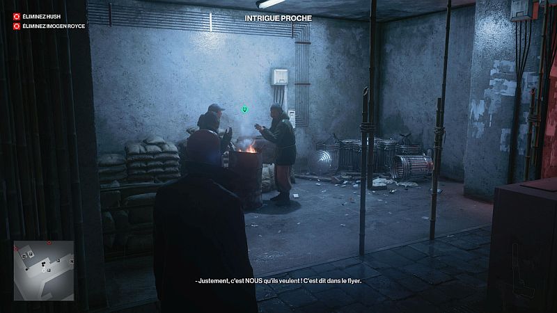 Comme d’habitude, suivez-le depuis le menu « Objectifs » après avoir commencé le niveau. Il devrait vous donner un marqueur sur la carte 01. Il y a des sans-abri derrière un immeuble qui parlent d’une opportunité d’emploi. Écoutez-les pour savoir comment cela commence.