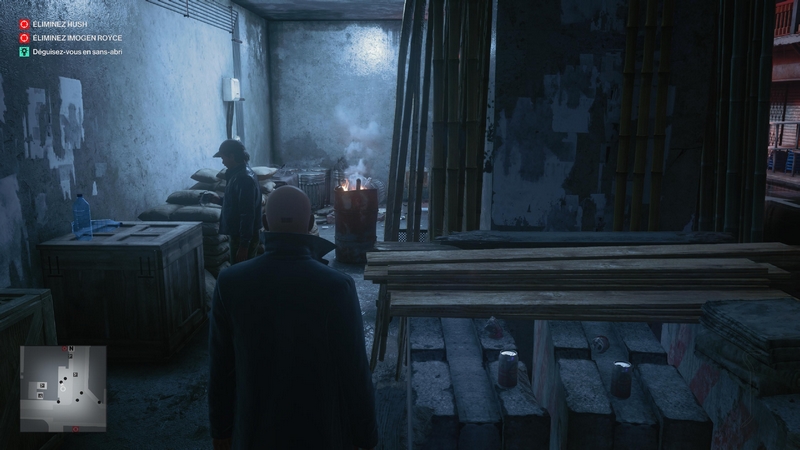 Éliminez l’un des sans-abri dans la ruelle et déguisez-vous avec ses vêtements.