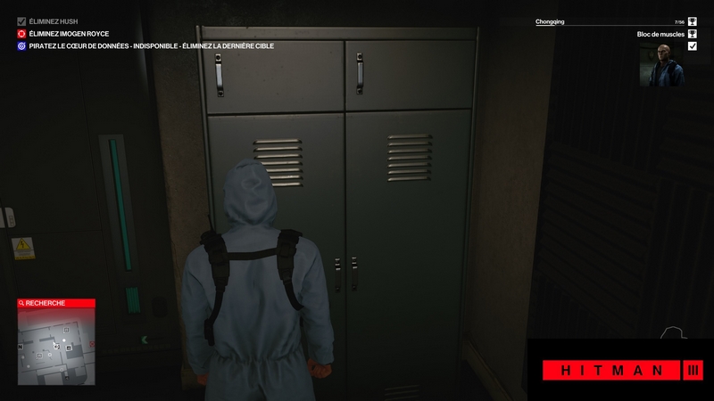 Avant de s’occuper de Hush, vous devez avant éliminer Junli et cachez son corps dans le balcon.