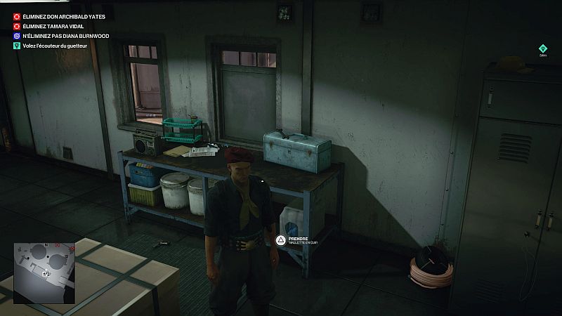L’écouteur du guetteur est automatiquement marqué. C’est entre deux exécuteurs. Accroupissez-vous dans l’herbe et allumez la radio pour les distraire, puis saisissez rapidement l’écouteur sans être vu.