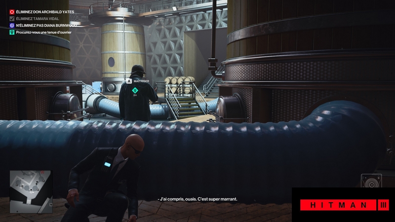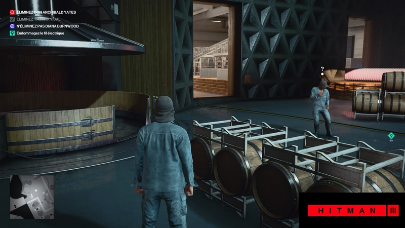 Comme d’habitude, suivez-le depuis le menu “ Objectifs ” après avoir commencé le niveau. Un marqueur vert vous montrera où trouver l’indice. C’est au niveau 02 dans la cuve de fermentation. Il y aura deux ouvriers (avec des vêtements bleus) qui parle d’un dysfonctionnement de la pompe qui fait déborder les cuves à vin.