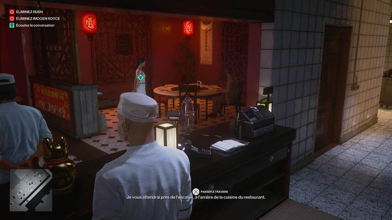 Comme d’habitude, suivez-le depuis le menu “Objectifs” après avoir commencé le niveau. L’indice qui active ce scénario se trouve dans le restaurant. Entendez la femme parler au membre du conseil. Voir l’emplacement ci-dessous.