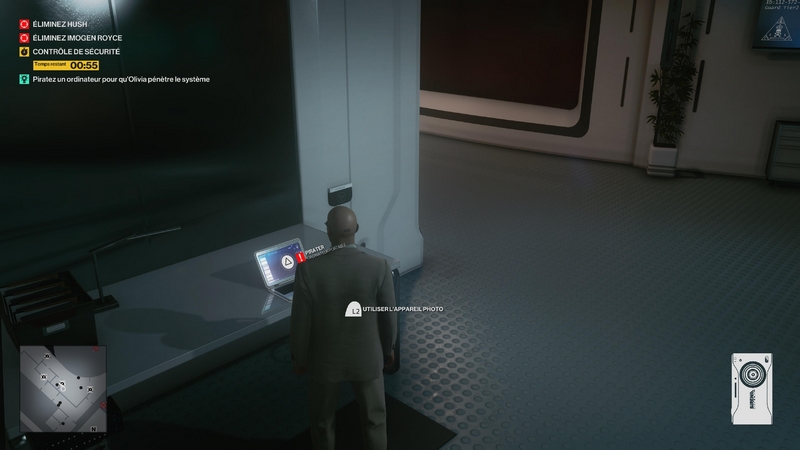 Continuez à suivre la guide dans l’établissement. À un moment donné, une minuterie de 60 secondes démarre et vous devez trouver un ordinateur pour arrêter la minuterie. La même pièce où la minuterie démarre a un PC sur la gauche. Obtenez la clé électronique d’accès sur le bureau de cette pièce et dirigez votre caméra vers le panneau près de la fenêtre devant le PC. Cela assombrira la fenêtre afin que la personne de l’autre côté ne puisse pas vous voir interagir avec le PC.