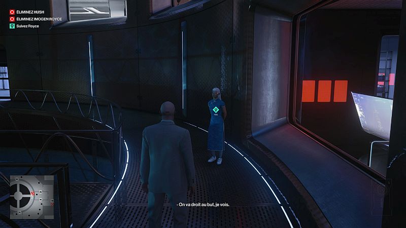 Suivez Royce dans toute l’installation. Elle vous guidera à travers le noyau et vous conduira éventuellement à son bureau qui dispose d’une grande console avec laquelle interagir.